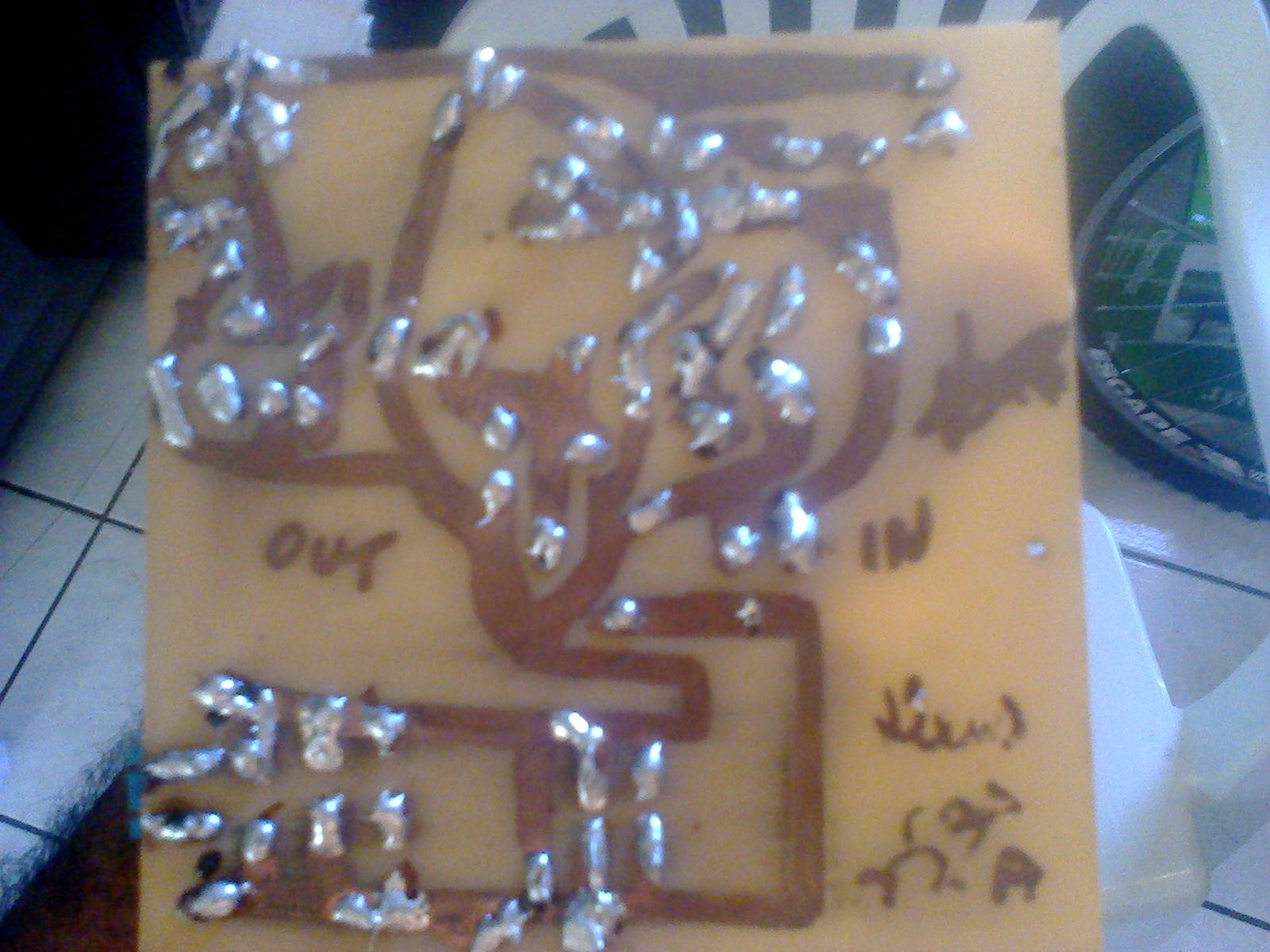 mas acabou saindo o produto final. Por ser um desenho complexo não consegui fazer as trilhas negativas como sempre costumo fazer, apenas fiz o desenho com mascaras GND. Dada as minhas limitações para com o programa*Não tem nem um mês que mecho com ele*. Mas da pra se unir as trilhas negativas com a caneta retroprojetor sem problemas, basta apenas você seguir sua *intuição* e tomar cuidado para não desenhar errado e nem se perder no caminho. Essa placa quando fiz, por se tratar de um dos meus primeiros amplificadores com baixo orçamento, fiz tudo na caneta de retroprojetor. Só posteriormente que *migrei* para o método termico